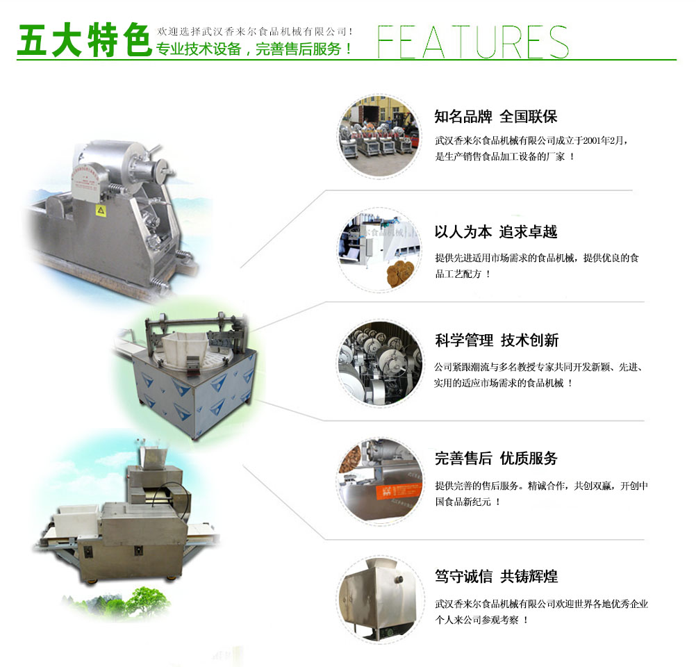 武漢香來爾食品機械有限公司成立于2001年2月,是生產(chǎn)銷售休閑食品加工設(shè)備的廠家。公司緊跟市場潮流與華工、華農(nóng)多名共同開發(fā)新穎、實用的適應(yīng)市場需求的食品機械,自有車、刨、鉆、銑、剪板、折彎等先l進機床100多臺 套。7年誠信通會員,產(chǎn)品出口拉美、非洲、東南亞、歐洲等很多國家和地區(qū),國內(nèi)很多食品企業(yè)都是我們的合作伙伴。目前公司專門設(shè)立一個的售后 服務(wù)班子,在公司逐步發(fā)展強大的過程中,一直堅持售后服務(wù)的同步發(fā)展,精良的食品設(shè)...